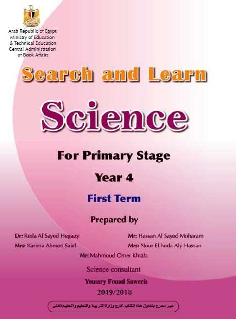 تحميل كتاب العلوم باللغة الانجليزية للصف الرابع الابتدائي الترم الأول2019